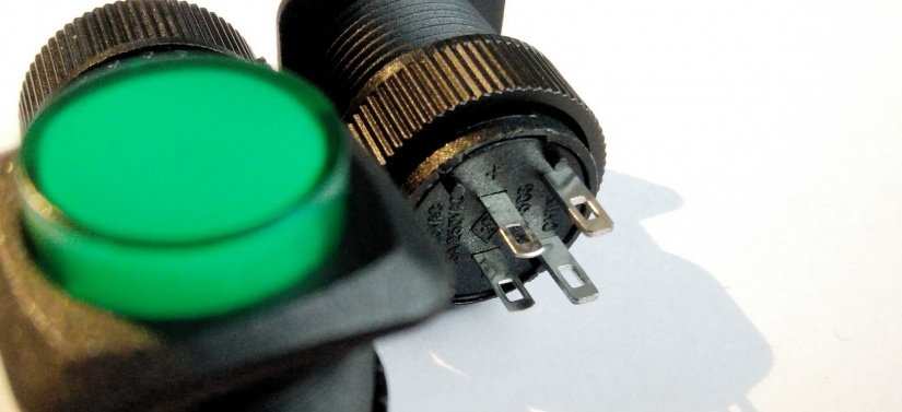Next, we have buttons, specifically Adafruit’s wonderful 16mm illuminated pushbuttons. This is a normally open pushbutton that makes momentary contact when pushed, it has an audible click, again to give the player feedback. The button also comes with a built in LED (2.2V) which can be easily illuminated from a 3V/5V supply, of course, with a suitable inline resistor to prevent the LED from blowing.