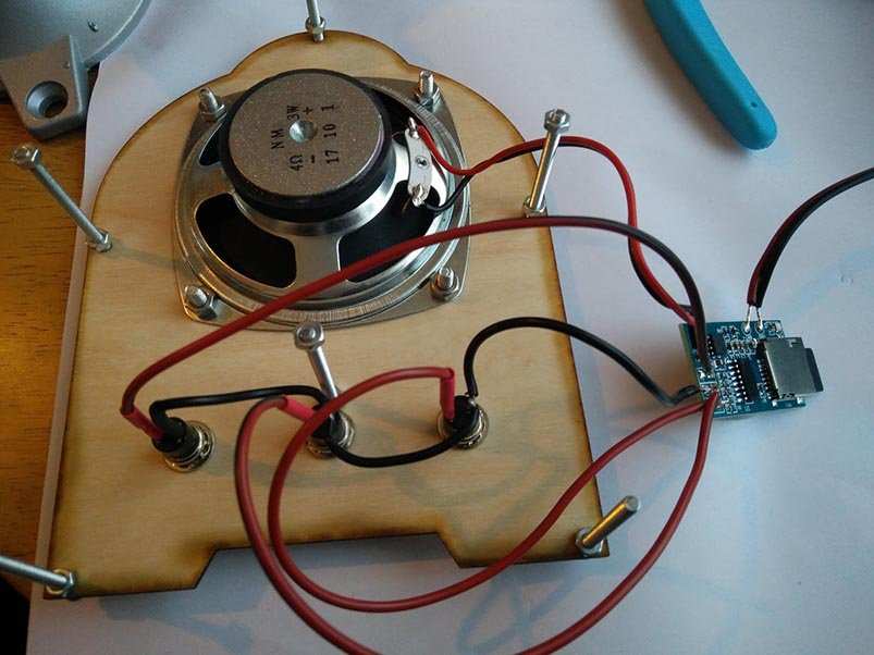I then routed the wires so that they would enable the MP3 board to be housed on one side, giving easy access to the microSD card used to store the music.