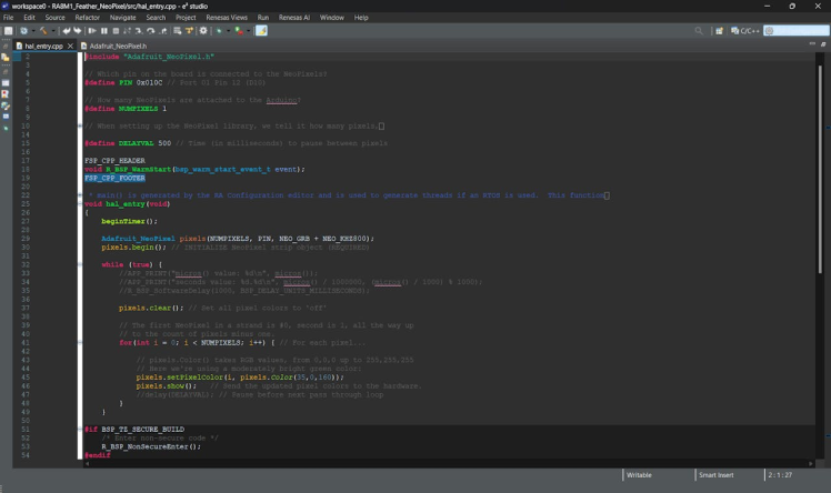 NeoPixels operate on a specific timing-sensitive protocol, which the RA8 Feather SoM can handle efficiently. Here's how you can integrate NeoPixels into your RA8-based robotics projects: