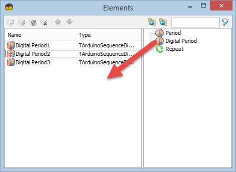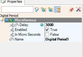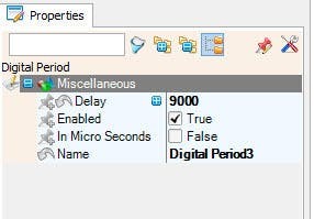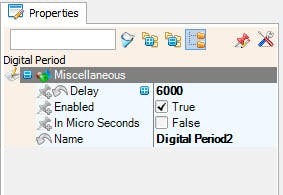 - On the left side of the "Elements" window select "Digital Period1" and in the properties window set "Delay" to 3000 <<This is the time after (3s) for the first light to flash