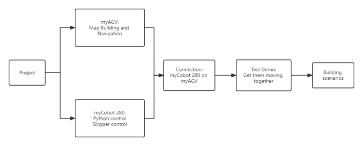 As a developer, I am currently involved in an interesting project to combine a SLAM (Simultaneous Localization and Mapping) car, myAGV, with a small six-axis robotic arm, myCobot 280 M5Stack, for research on logistics automation in education and scientific fields.