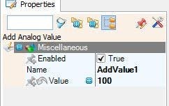 - Add "Add Analog Value" componentNow select "AddValue1" and in the properties window set value to 100