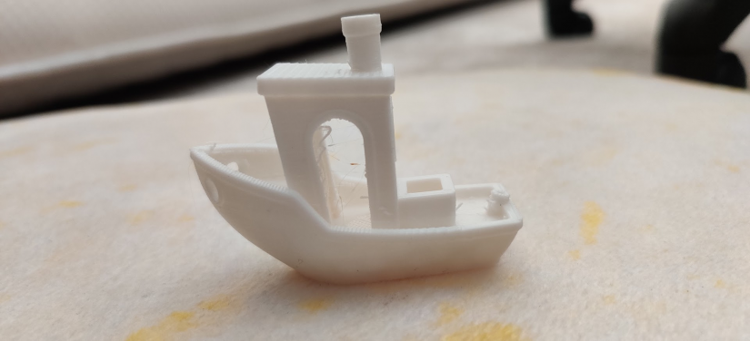 The classic 3D printer “torture test”, Benchy the Benchmarking Boat is a popular first print for a new printer and tests the capabilities of the machine. The results of this are quite varied, the overhanging areas have printed perfectly, the dual fans seem to cool the plastic quickly enough to handle harsh overhangs like the window and doorway. Unfortunately, any detail on the bottom was lost from the poor quality print surface, and an odd rough texture was left on the base.