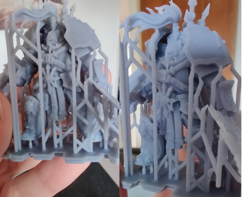 As an attempt at a larger model, making the most of the print size, this chicken foot intended to be part of a baba yaga hut shows the printers capability to deal with heavier and more substantial models. The size of the resin vat is plenty for keeping the print running. There’s some heft to the finished model, and again there are some powdery imperfections on the model but these don’t tend to matter once the model is prepped and painted.