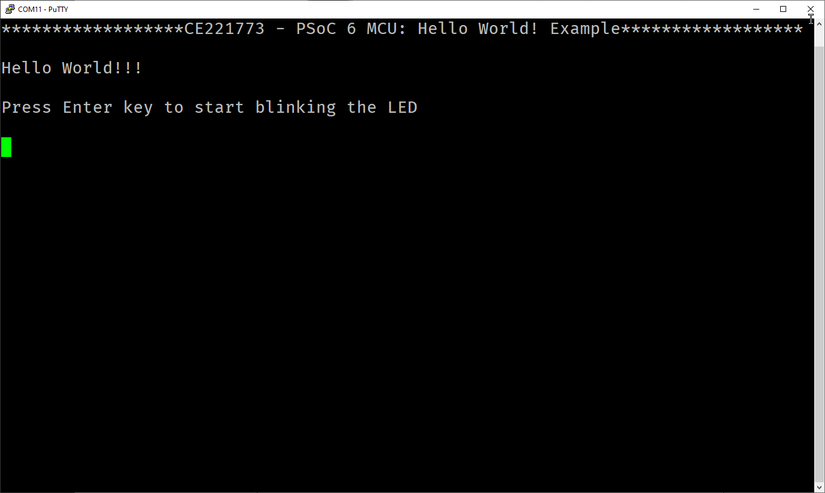 The simple Hello World program toggles the onboard LED when the terminal window detects keyboard input from the user. These pre-flashed examples are a great way to check everything is running alright and get immediate feedback.