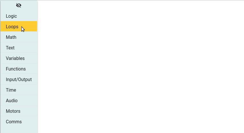 Let's start our project by creating an infinite loop, into which our code will run. From the Loops group drag repeat while and then from the Logic group drag true and connect it in the space just after our repeat while block.