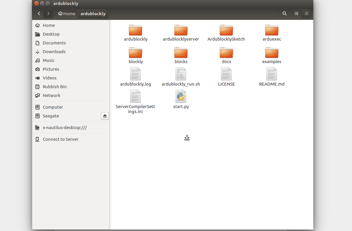 Ardublockly can be found at Carlos’ blog https://ardublockly.embeddedlog.com/, and we can find the installation instructions for each operating system. Downloading the necessary package is quick, and only requires extracting to a location on your computer. From there we can run the ardublockly_run file, on Windows this is a batch (bat) file, Linux and Mac this is a shell (sh) file. Run the file by double-clicking on it (Windows), but for Linux we will need to open the script using the Terminal and a quick way to do so is to right-click in the directory and select “Open in Terminal” and then type in the following.