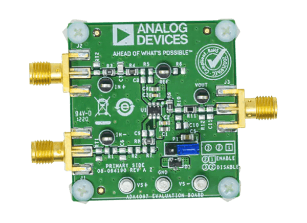 This kit is designed to evaluate the ADA4097-1 6-lead, thin small outline transistor (TSOT), robust Over-The-Top'" precision op amp. ADA4097-1 op amps provide offset voltages of <60µV, input bias currents (IB) of <0.3nA and can operate on single or split supplies that range from 3V to 50V. The EVAL-ADA4097-1 kit is a prepopulated board using a gain of 1 configuration.