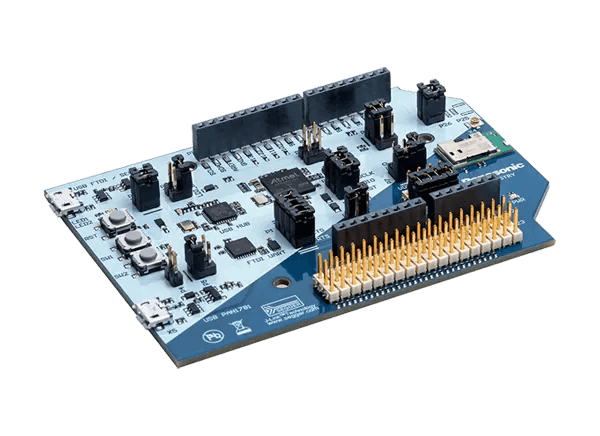 Panasonic's ENW89857AXKF evaluates the company's PAN1781 BLUETOOTH®Low Energy (LE) module that features the nRF52820 single-chip controller and is ideal for loT wireless applications. The ENW89857AXKF board features an Arduino Footprint and allows hardware access to the module pins as well as easy stacking of separate sensor test shields.