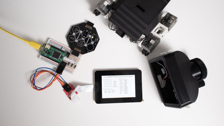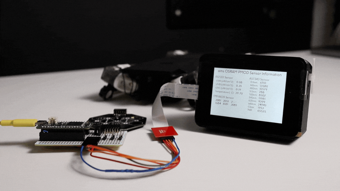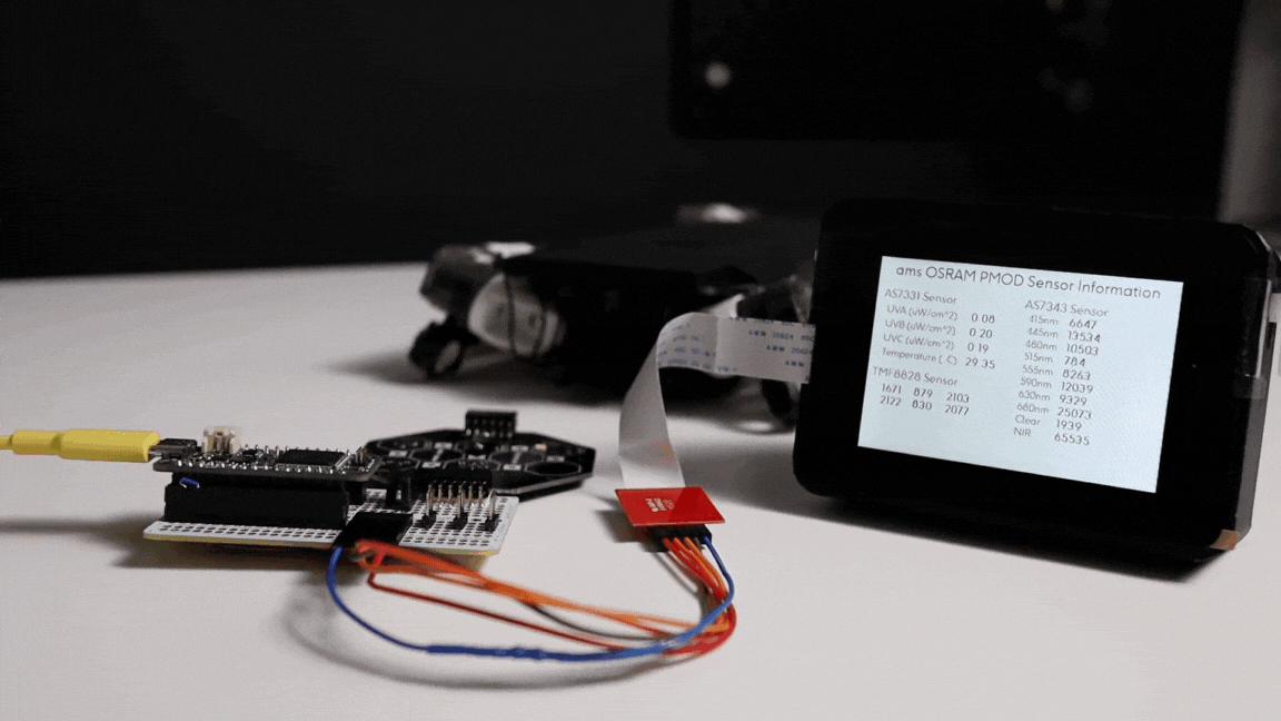 In this section, we'll explore I2C sensors and their implementation with the Renesas RA8 Feather board, using the Zalmotek PMOD Optical Sensor Evaluation Board 1 AMS OSRAM as our example. This evaluation board showcases three advanced I2C sensors from ams OSRAM, each offering unique capabilities for robotic perception: