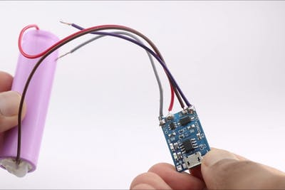 This is the circuit that I used in this project, the connections are straightforward. Start by soldering wires to the battery first followed by soldering cables to the charging board.