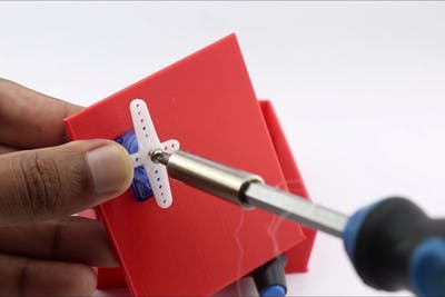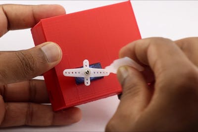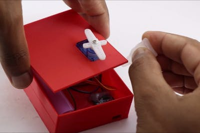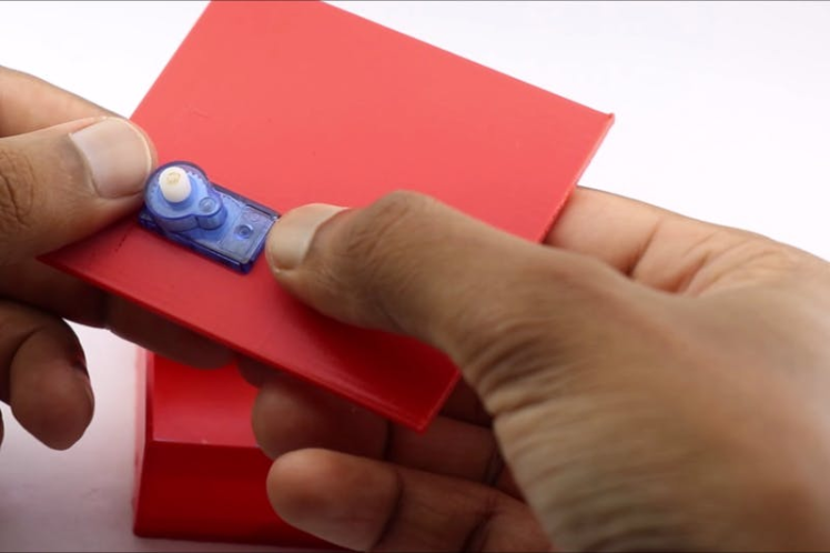Now with the help of acres secure the horn of the micro servo followed by sealing the base and this lid together, I used superglue to seal both.
