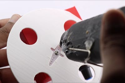 After this is dry add a few drops of superglue to the servo horn place the rotating disc and allow it to dry.