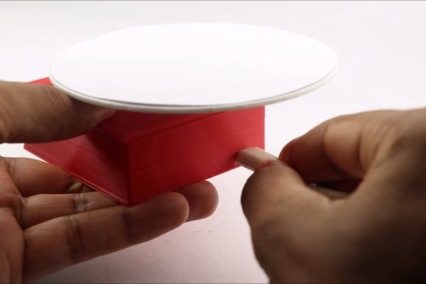 For the base and the servo holder, I used Red filament and for the rotating disc, I used White.