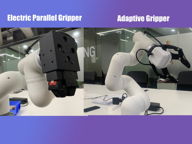 Electric Parallel GripperIn contrast, the electric parallel gripper has a clamping width of only 14 mm, but it is more accurate and stable than the adaptive gripper. The electric parallel gripper is more suitable for scenarios where high precision is required and parts are small.