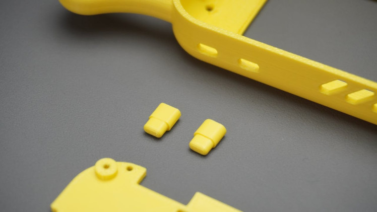 - Place the two identical push button extensions into their respective slots inside the housing.