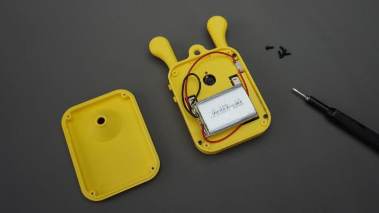 AI Bunny includes a Lithium-Ion battery, securely mounted inside the case and wired through a power switch. Best of all, it charges directly via the UNIHIKER's USB Type-C port, so no need to remove the battery or open the case. Plug it in, and it charges while you build or code!
