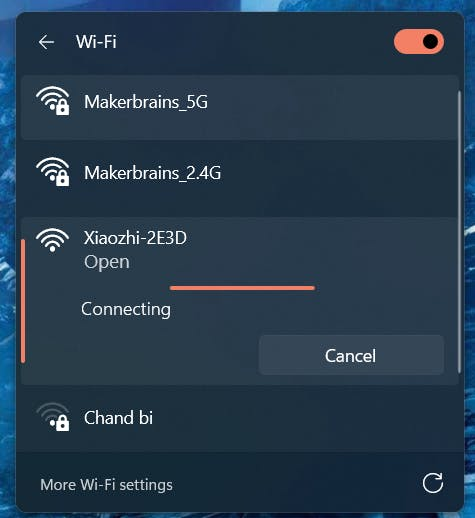 - On your phone or PC, open Wi-Fi settings and connect to the hotspot named xiaozhi.