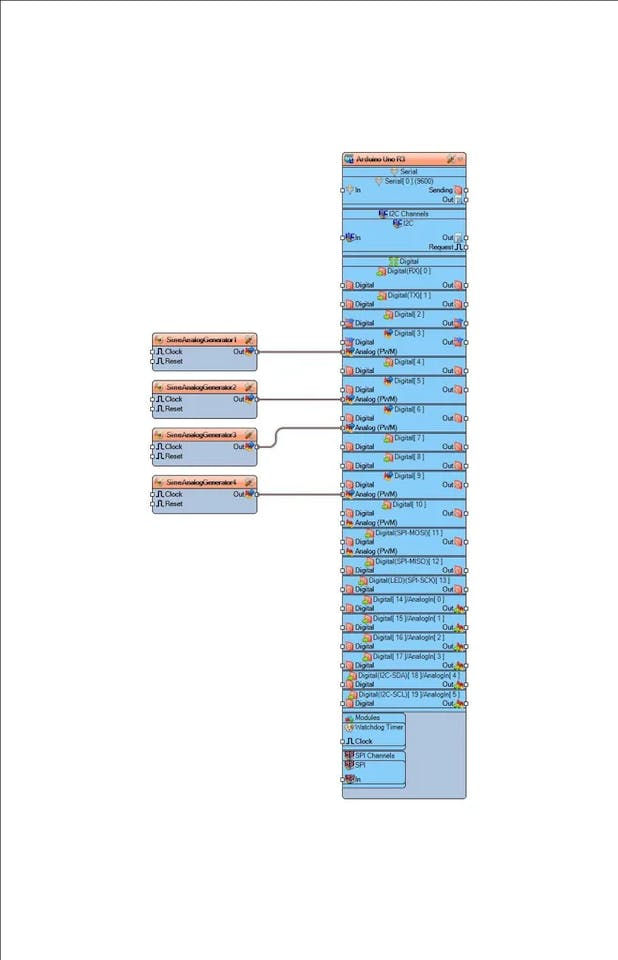 Step 2: The CircuitStart Visuino as shown in the first picture Click on the "Tools" button on the Arduino component (Picture 1) in Visuino When the dialog appears, select "Arduino UNO" as shown on Picture 2 Select "SineAnalogGenerator1" and in properties window set : Select "SineAnalogGenerator2" and in properties window set : Select "SineAnalogGenerator3" and in properties window set : Select "SineAnalogGenerator4" and in properties window set : In Visuino, at the bottom click on the "Build" Tab, make sure the correct port is selected, then click on the "Compile/Build and Upload" button. Congratulations! You have completed your project with Visuino. Also attached is the Visuino project, that I created for this tutorial, you can download it here and open it in Visuino: https://www.visuino.com