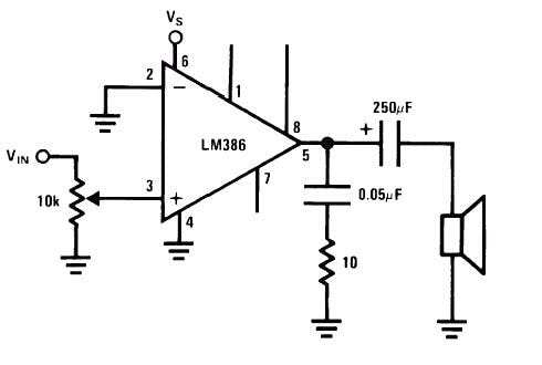 Here in this Text to Speech Converter Project, we’ve utilized an amplifier circuit to minimize the noise and get a clear sound. The amplifier circuit is made by using the IC LM386. Circuit diagram for it is shown below: