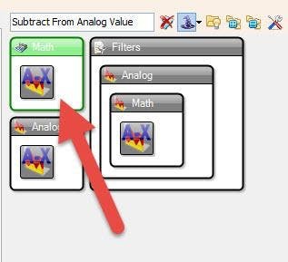"Subtract From Analog Value" component will be used to reverse the direction of the servo rotating, so insted of rotating it from right to left we want to rotate it from left to right like a real gauge meter.