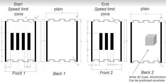 Patterns to delimit speed zones, objects and the end of the circuit can be placed on the different circuits.