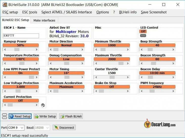 However, to be able to operate the propulsion engines we need to initialize the ESC using the BlHeli suite software. The ESC boards are the intermediate boards between the motors and the programming board that drives the motors by sending a PWM signal, which is the control of the speed of the motors according to the value sent by the Teensy4.0 board.
