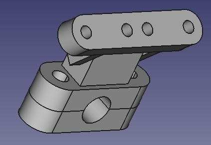 To be able to fix the cameras and the test bench, we decided to make a part with a 3D printer and FreeCAD. This part allows its attachment to the mast of the car and a hook on which will rest the cameras and the test bench. In addition, a tilt system will allow us to manually adjust the tilt desired for the cameras and the led bench. This inclination is one of the most important points for the proper functioning of our system.
