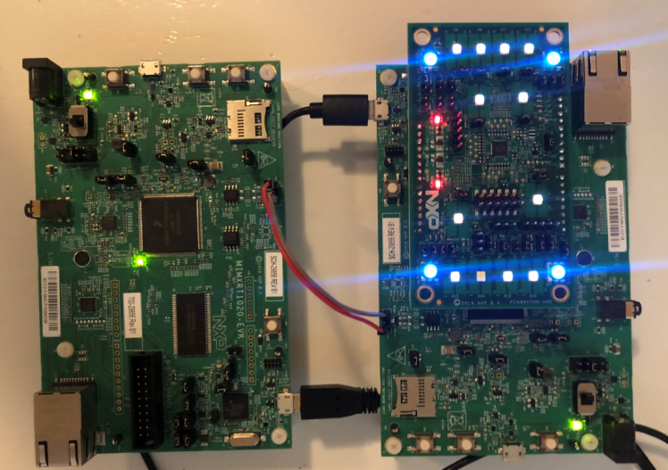 I have used two boards to develop the full application. At the system level one board acts as a Voice Classifier and the other one as a Visualizer. These two systems communicate with each other via the CAN bus.