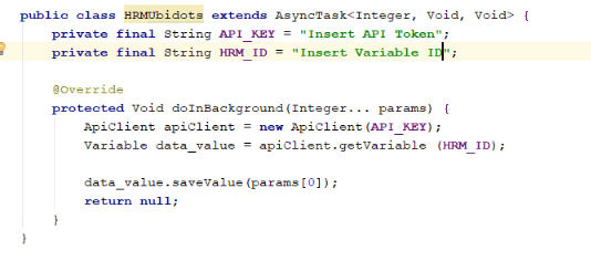 (Note: Remember to change the token keys before building your program, as discussed earlier. If the keys are not updated before building, your data will not be displayed on Ubidots.)