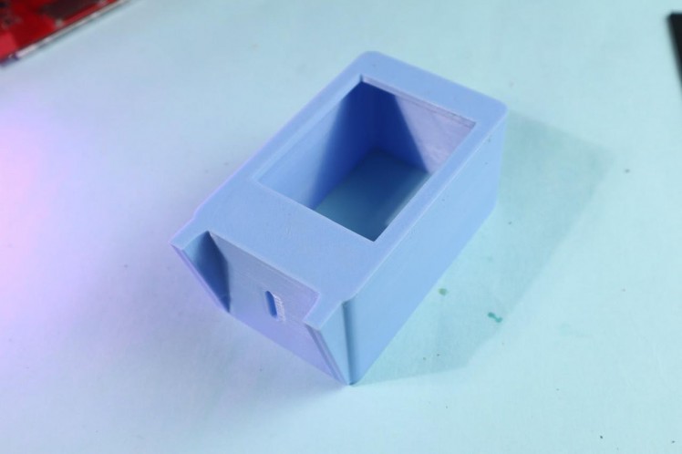 Apply a small amount of hot glue to secure it. Make the wiring between Header (display) and Wemos board first, then install them into the enclosure later.