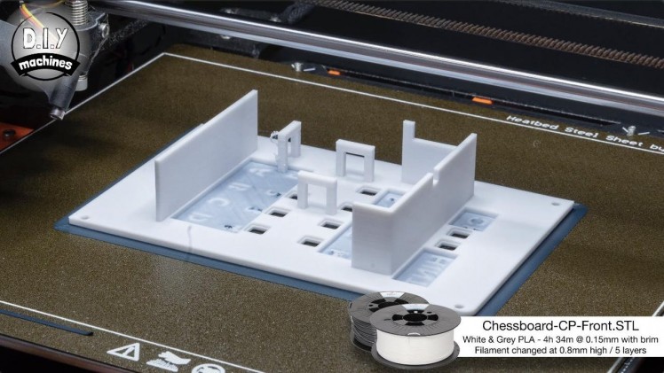 The first part you need to print is the main frame of the chessboard. It is broken into four separate prints which are glued together. Each one has a 'key' to help make alignment much easier.