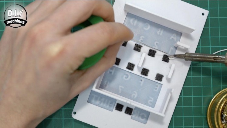 For the ground connection, connect a 18cm long wire to the top right most leg of the most top right button (which is marked as A1 on the front of the control panel). Use some short lengths of wire to hop between the buttons along the top row of legs, then use a 5cm long wire to loop around to the bottom run of legs on the next row of buttons.