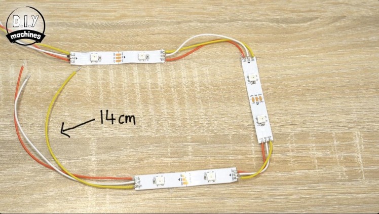 The second LED strip can then be soldered onto the other end of these wires. You should notice that it already naturally wants to corner.