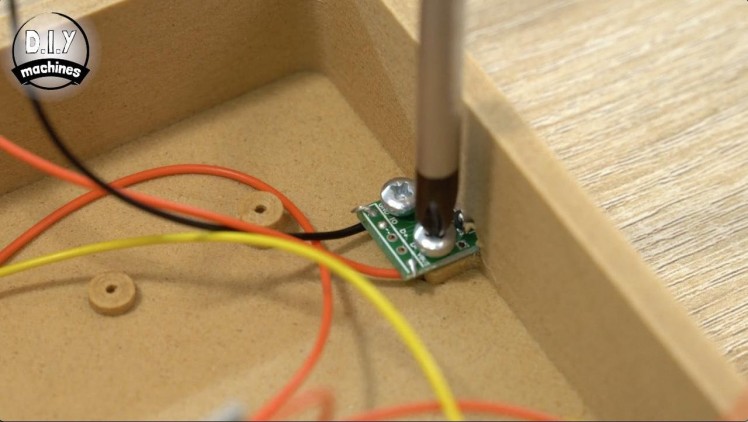 Fix it into place inside the chessboard using two more of the M3x6 bolts and connect the wires now coming from the USB port to their respective power blocks along with the other wires.