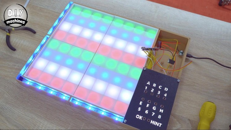 The control panel for our smart chessboard uses selective backlighting to intuitively communicate what the player is expected to input or press at any particular time. For example the 'hint' button does not light up until a hint is available from the chess computer, and the co-ordinate buttons are not illuminated whilst we wait for the computer to return its move.
