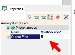 - For All Analog Multi Source components in the properties window set "Output Pins" to 5