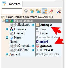 Select "Display1" and in the properties window set "Background Color" to clBisque and "Orientation" to goDown