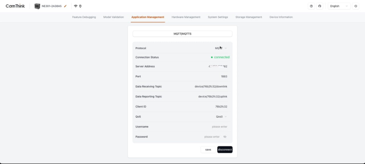 - Password: the password to join mqtt server, input it according to the server's needs.