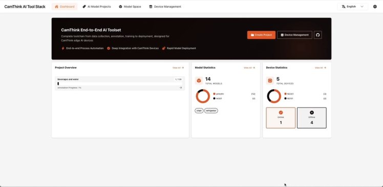 - Camthink AI Tool Stack, an end-to-end AI toolset covering the entire workflow from data collection, annotation, training, quantization, to deployment.