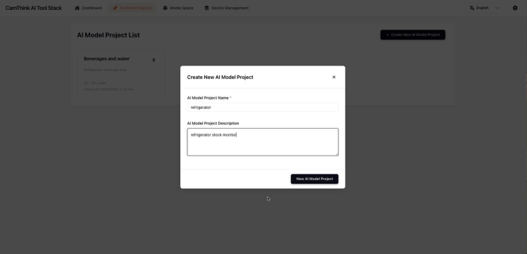 Click Create New AI Model Project, Input the name and description: