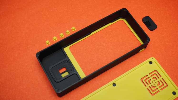 Start by gathering the 3D-printed case, 5 buttons, and the display.