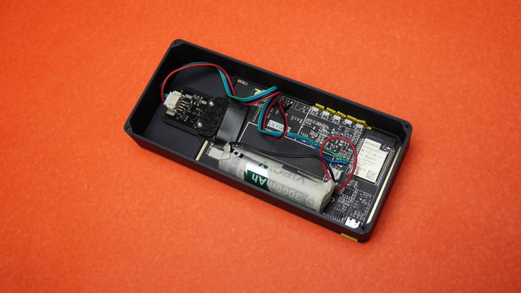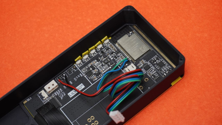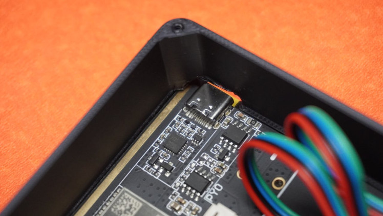 Carefully place the display inside the housing, ensuring that the buttons align properly and the USB Type-C port is accessible.