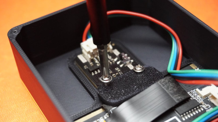 Use the 3D printed clip and two 2mm screws to secure the sensor in place. The clip should lock both the display and the sensor for a firm hold.