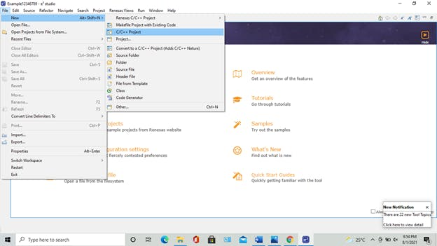 1. Download and Install The e2 studio from the official website of Renesashttps://www.renesas.com/us/en/software-tool/e-studio. To know how to install the e2 studio please go through the link https://www.renesas.com/us/en/software-tool/e-studio.