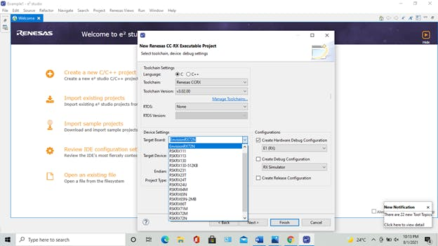 Renesas RX72N Envision Kit Introduction and Creating a simple Example Using e2 Studio.