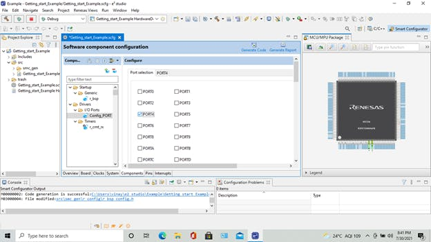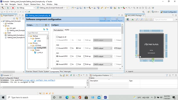 In Port Selection select PORT4 and From Port4 Select P40 as OUT And OUTPUT1 And Generate Code.