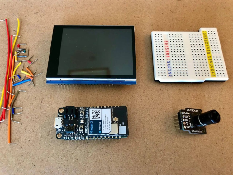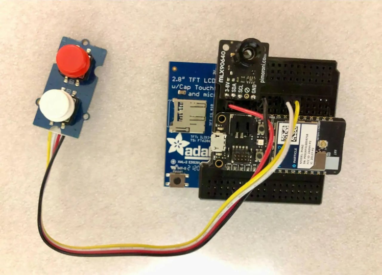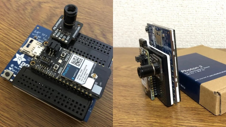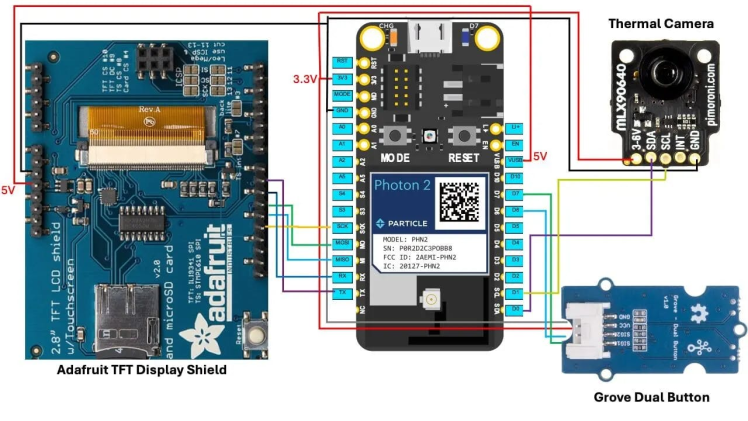 This project needs a reliable, low-powered, and Wi-Fi enabled device that is also capable of running image classification models. We will be performing TensorFlow Lite model inference using Edge Impulse, and for this purpose, we will utilize the Particle Photon 2, which has ample memory for buffering thermal image data and storing ML models. We are using a thermal camera (MLX90640) with a 32×24 resolution, which is a far infrared array of 768 thermal sensors. Additionally, we are incorporating the Adafruit 2.8″ TFT touch shield for displaying thermal images and basic information during data collection and inferencing.