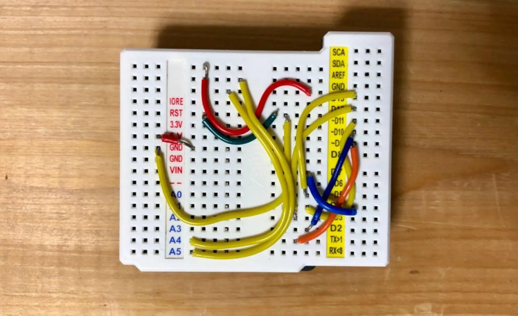 We used a stackable breadboard and jumper wires to assemble the hardware.