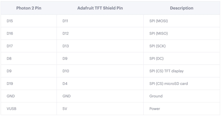 We are providing clear pin maps for a better understanding of the connections. The Adafruit TFT shield and microSD card are connected via the SPI interface, and its pins are based on the Arduino Uno R3 pinout.